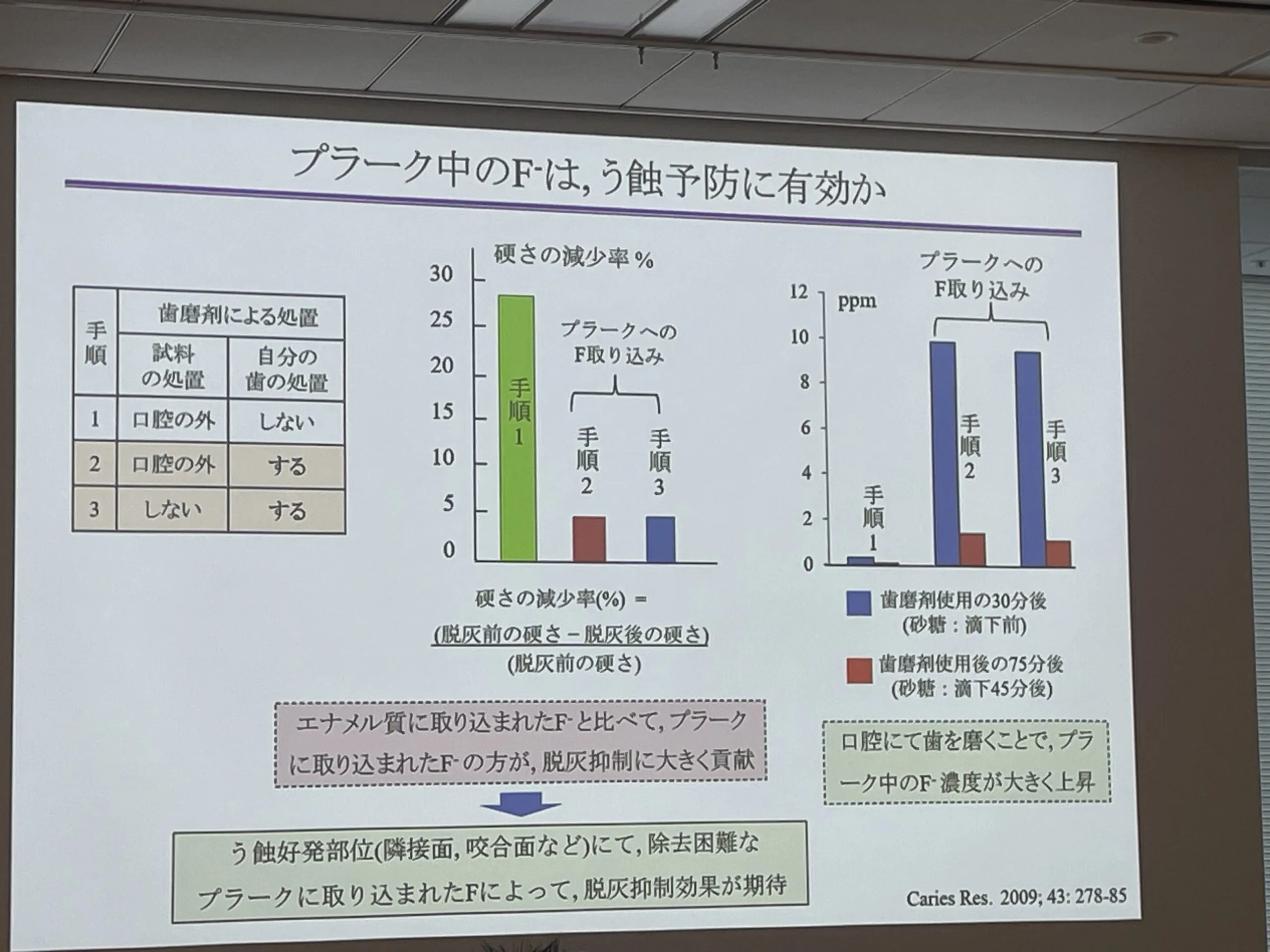 現在の虫歯予防はフッ素(正確にはフッ素ナトリウム)に大きく依存しています。今回も主にフッ素をメインとした講習でした。臨床的なフッ素の効果については、たくさんの論文でエビデンスが実証されており私も理解していますが、今回は科学的なフッ素の作用の話があり結構知らないことが多かったので、フッ素に対する新しい知識が習得できて大変勉強になりました。おすすめの本も購入したので早速読みたいと思います。
