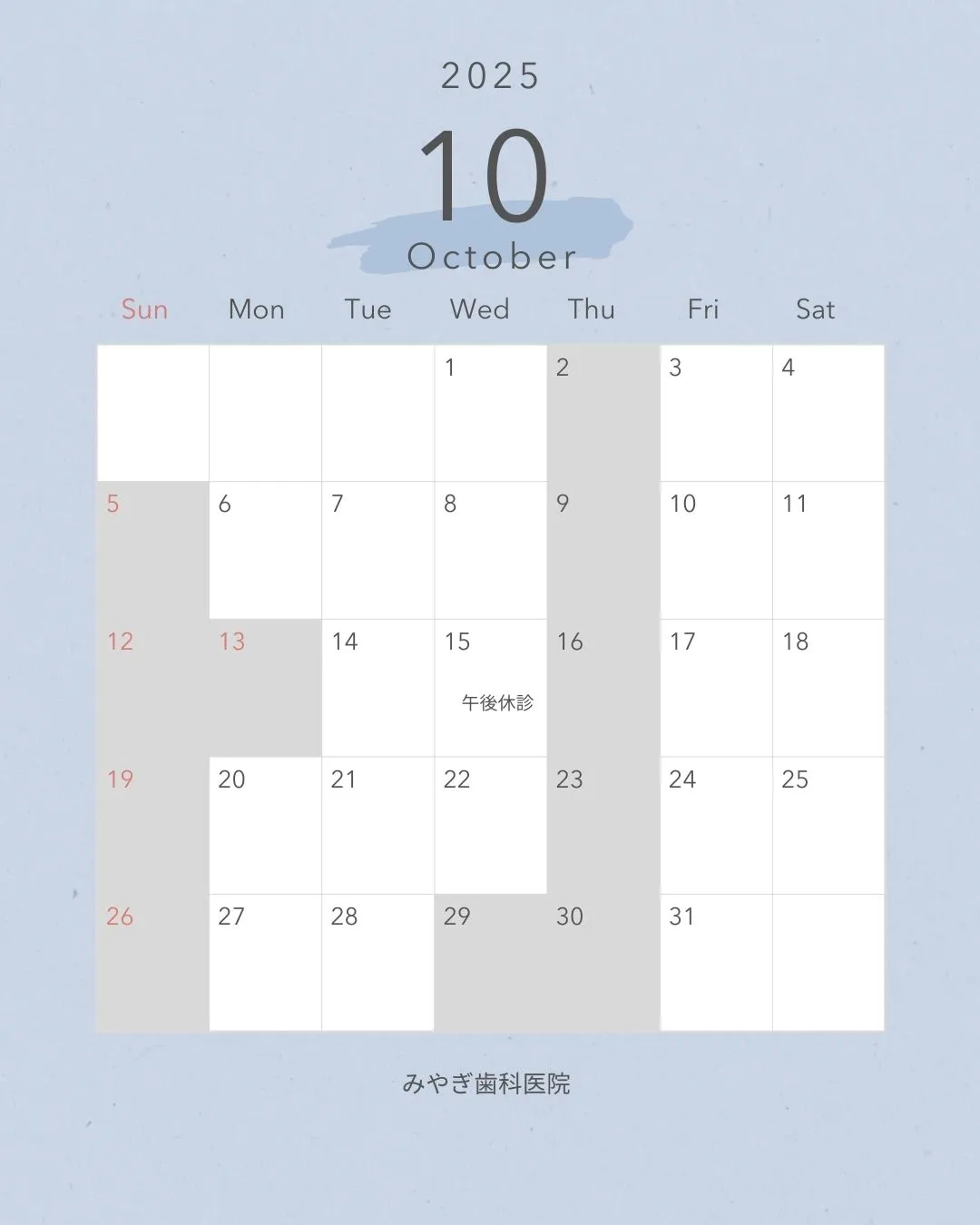10月診療について<休診案内>