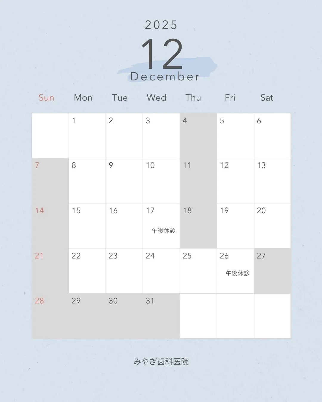 年末年始のお休みがあるため、通常とは異なった休診日です